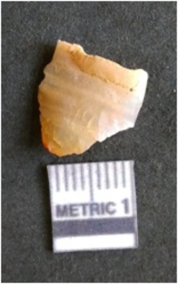 | Description / विवरण | The banded agate piece is crypto-crystalline in nature, with clear visible bands as a part of its natural formation. the piece has s harp flaked edges and flake scars on the surface. |