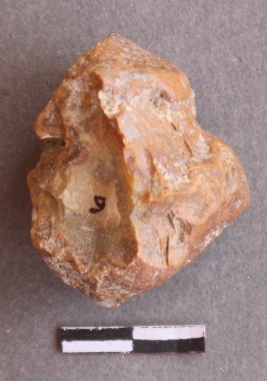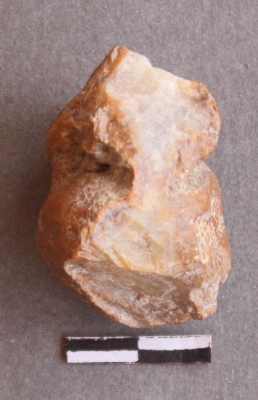 | Description / विवरण | It is lithic debitage. It is a nodule like chalcedony with cortex covered almost all the sides. Flakes had been removed at places. Translucent. |