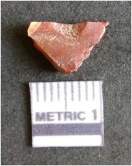 | Description / विवरण | The chert flake has a clear striking platform and ripple marks on the surface as a result of flaking. The piece is smooth, with regular fracture pattern and matt finish on the surface with a prominent bulb of percussion nd sharp flaked edges. |