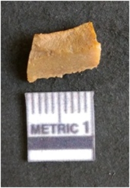 | Description / विवरण | The chert flake has a clear striking platform and ripple marks on the surface as a result of flaking. The piece is smooth, with regular fracture pattern and matt finish on the surface with a prominent bulb of percussion nd sharp flaked edges. |