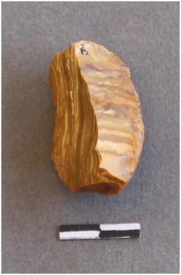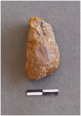 | Description / विवरण | It s a woody agate fragment. It has a cortex which is intact. It have got negative bulb of percussion. Ripples are visible on the flakes. |