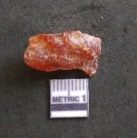 | Description / विवरण | It is a carnelian flake. Very cryptocrystalline. Flakes scar on the surface with ripples on it. |