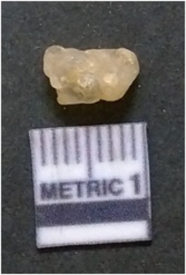 | Description / विवरण | The chalcedony flake is pale in color and translucent in appearance. The piece has s harp flaked ends and a bulbous end due to flaking. The flake has a crypto-crystalline silica matrix. |