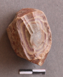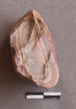 | Description / विवरण | Chert stone, flakes had been partially removed; surface is covered with ferric patination. |
