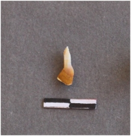 | Description / विवरण | The agate piece is likely to be a byproduct of flaking. It has a prominent bulb of percussion and pointed end. |