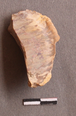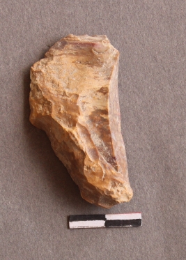 | Description / विवरण | It is a Chert fragment. Flake scars on the surface. Cortex on one side of the fragment. |