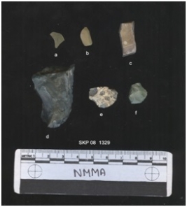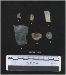 | Description / विवरण | It is a chalcedony flake, with a bulb of percussion on the ventral side. |