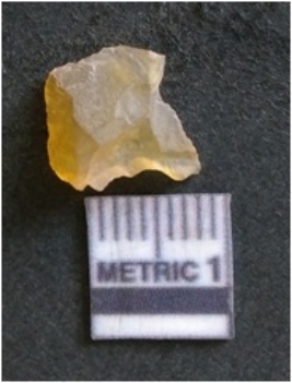 | Description / विवरण | The chalcedony flake is pale in color and translucent in appearance. The piece has s harp flaked ends and a bulbous end due to flaking. The flake has a crypto-crystalline silica matrix. |