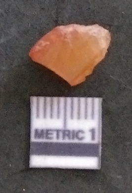 | Description / विवरण | It is a carnelian flake, with a striking platform with bulb of percussion on the ventral side. It is orangish in color, flake edges on the surface with ripple on it due to heavy percussion. |