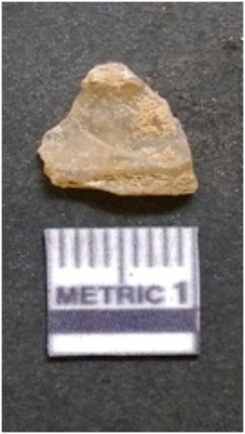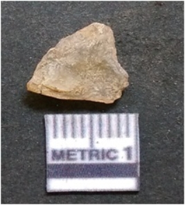 | Description / विवरण | The chalcedony flake is pale in color and translucent in appearance. The piece has s harp flaked ends and a bulbous end due to flaking. The flake has a crypto-crystalline silica matrix. |