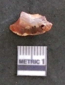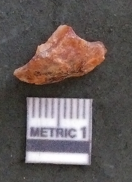 | Description / विवरण | It is a carnelian flake, with a striking platform with bulb of percussion on the ventral side. It is orangish in color, flake edges on the surface with ripple on it due to heavy percussion. |