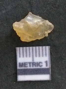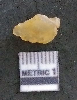 | Description / विवरण | It is a chalcedony flake, with a bulb of percussion on the ventral side. Cortex on one end. |