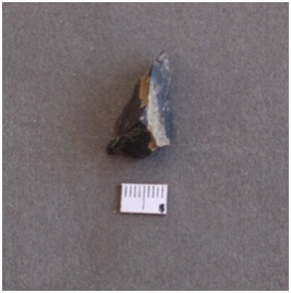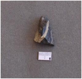 | Description / विवरण | Jasper with a grayish band, broken, traces of bulb percussion with erallure mark. |