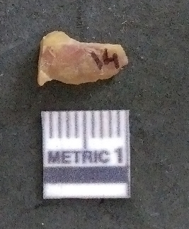 | Description / विवरण | It is a chert flake, with a striking platform, cortex on one end; there are many flake scars with ripples on it. |