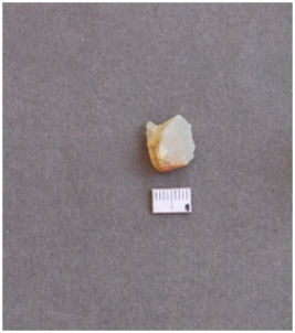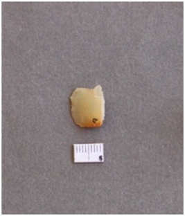 | Description / विवरण | It is a flat flake, with prominent bulb of percussion and sharp edges. |