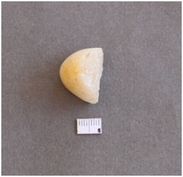 | Description / विवरण | It is a quartz piece, with cortex and semi circular in shape. |