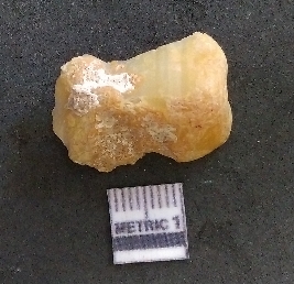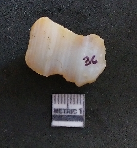 | Description / विवरण | It is a chalcedony flake, with a bulb of percussion on the ventral side. Cortex on one end. |
