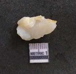 | Description / विवरण | It is a chalcedony flake, with a bulb of percussion on the ventral side. Cortex on one end. |