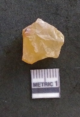 | Description / विवरण | It is a chalcedony flake, with a bulb of percussion on the ventral side. Cortex on one end. |