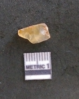 | Description / विवरण | It is a chalcedony flake, with a bulb of percussion on the ventral side. Cortex on one end. |