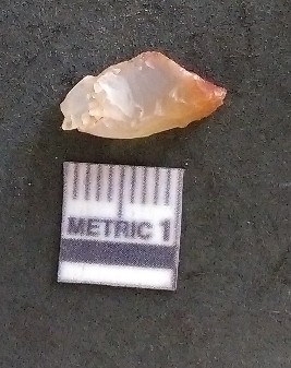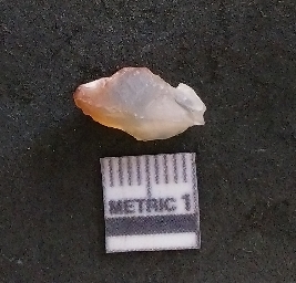 | Description / विवरण | It is a chalcedony flake, with a bulb of percussion on the ventral side. Cortex on one end. |