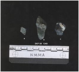 | Description / विवरण | It is a jasper flake with sharp edges and striking platform on the proximal end. Flakes scars on the surface with ripples on it. |