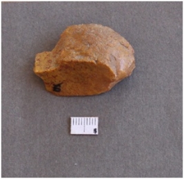 | Description / विवरण | This is a fragment of chert with red dotted marks, possibly due to impurities, cortex on one corner. Flaked surface with traces of one bulb of percussion at one cortex. |