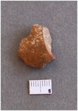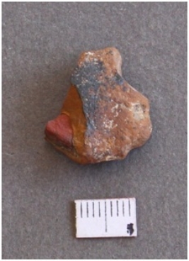 | Description / विवरण | The fragment is labeled as lithic fragment; however the piece seems to be a terracotta piece. One end shows a red stone like piece which might be a crayon like stone piece initially encountered. The piece also seems to be fired and an end appears to be of red ochre. |