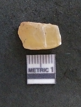 | Description / विवरण | It is a chalcedony flake, with a bulb of percussion on the ventral side. Cortex on one end. |