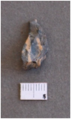 | Description / विवरण | It is a jasper piece, with flaked surfaces. |