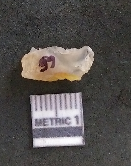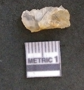 | Description / विवरण | It is a chalcedony flake, with a bulb of percussion on the ventral side. Cortex on one end. |