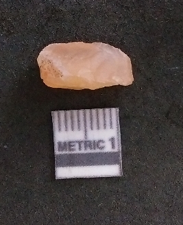 | Description / विवरण | It is a chalcedony flake, with a bulb of percussion on the ventral side. Cortex on one end. |