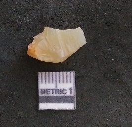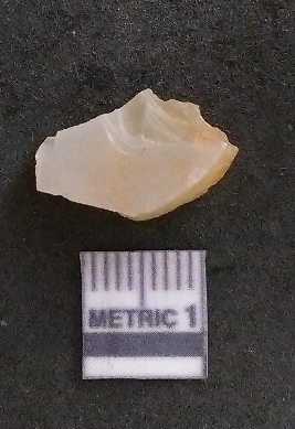 | Description / विवरण | It is a chalcedony flake, with a bulb of percussion on the ventral side. Cortex on one end. |