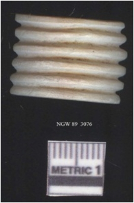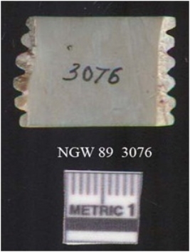| Description / विवरण | It is a shell debitage, it is cremish white in color. The saw cut marks are clearly seen on the surface. Multi grooving can be seen on one side of the surface. |