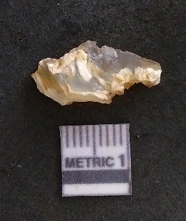 | Description / विवरण | It is a chalcedony flake, with a bulb of percussion on the ventral side. Cortex on one end. |