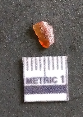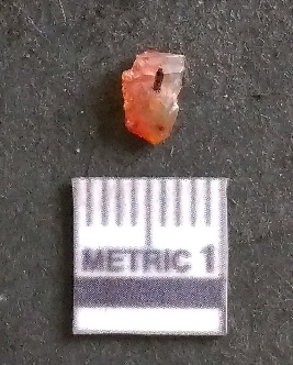 | Description / विवरण | It is a carnelian flake, with a striking platform with bulb of percussion on the ventral side. It is orangish in color, flake edges on the surface with ripple on it due to heavy percussion. |
