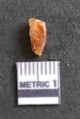 | Description / विवरण | It is a carnelian flake, with a striking platform with bulb of percussion on the ventral side. It is orangish in color, flake edges on the surface with ripple on it due to heavy percussion. |