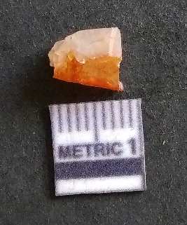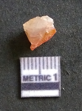 | Description / विवरण | It is a carnelian flake, with a striking platform with bulb of percussion on the ventral side. It is orangish in color, flake edges on the surface with ripple on it due to heavy percussion. |