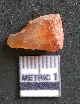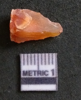 | Description / विवरण | It is a carnelian flake, with a striking platform with bulb of percussion on the ventral side. It is orangish in color, flake edges on the surface with ripple on it due to heavy percussion. |