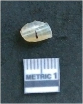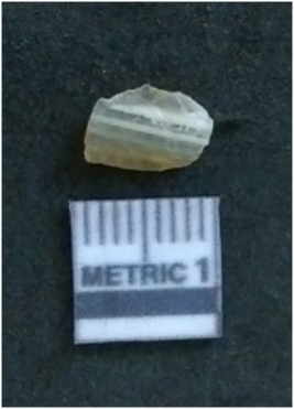 | Description / विवरण | It is an agate flake with bulb of percussion on ventral side of the fragment. Flake ridges on the surface. |