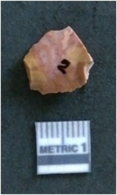 | Description / विवरण | It is a chert flake, with a striking platform, cortex on one end; there are many flake scars with ripples on it. |