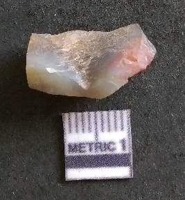 | Description / विवरण | It is an agate flake with bulb of percussion on ventral side of the fragment. Flake ridges on the surface. |