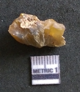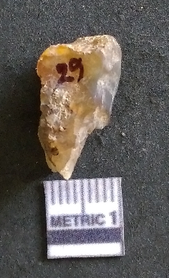 | Description / विवरण | It is a chalcedony flake, with a bulb of percussion on the ventral side. Cortex on one end. |