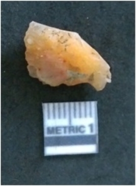 | Description / विवरण | It is a quartz flake. Very cryptocrystalline. Flakes scar on the surface with ripples on it. |