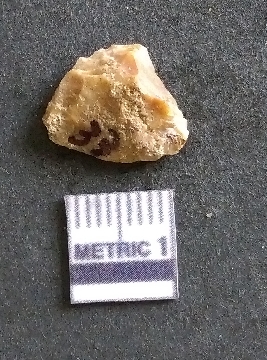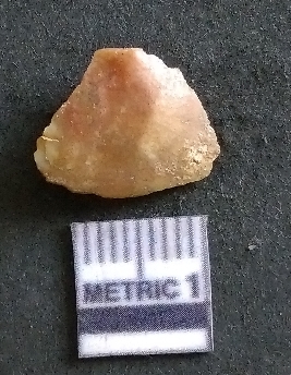 | Description / विवरण | It is a chert flake, with a striking platform, cortex on one end; there are many flake scars with ripples on it. |