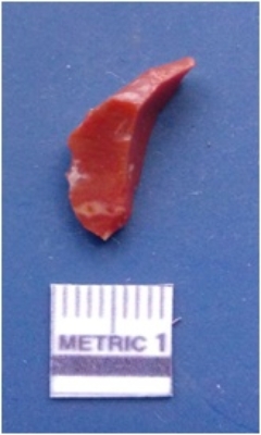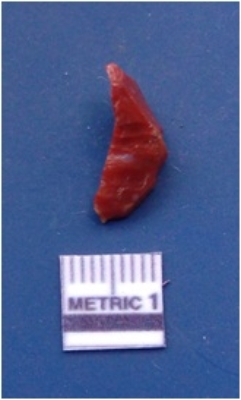 | Description / विवरण | It is a chert fragment, it is in a crescent shape. Flake scars on the surface. Sharp edges and pointed ends. |