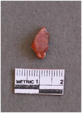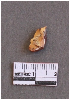 | Description / विवरण | It s a carnelian flake, with a striking platform with bulb of percussion on the ventral side. |