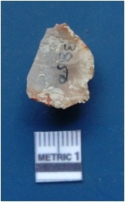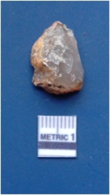 | Description / विवरण | It is a chalcedony fragment, heat treatment done on the surface. Flake ridges with ripples on them. Translucent in appearance. |
