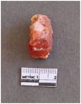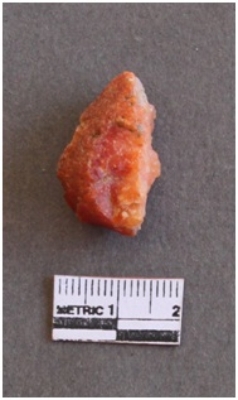 | Description / विवरण | It s a carnelian flake, with a striking platform with bulb of percussion on the ventral side. |