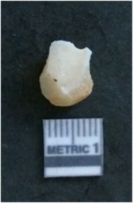| Description / विवरण | It is a quartz flake. Very cryptocrystalline. Flakes scar on the surface with ripples on it. |